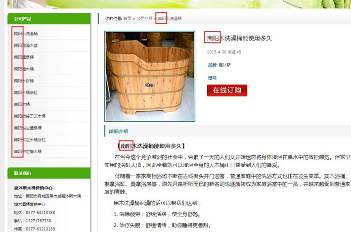 該頁面上面的產(chǎn)品詞、長尾詞都變成了帶有“南陽”的地域詞了。