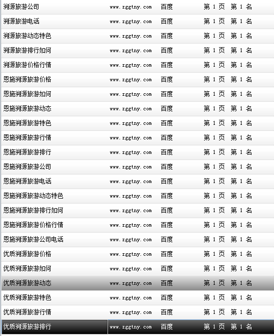 各關(guān)鍵詞在各大搜索引擎排名情況: