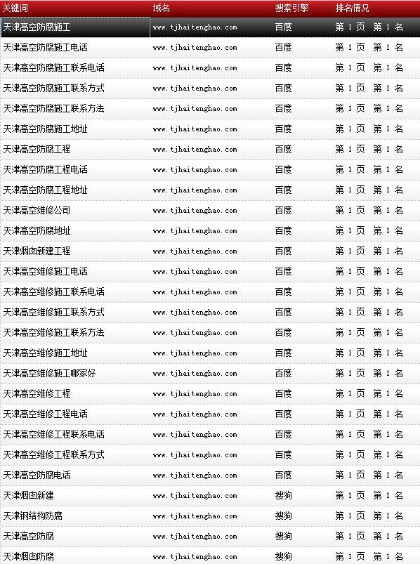 關(guān)鍵詞“天津高空防腐”“天津煙囪防腐”排名百度首頁