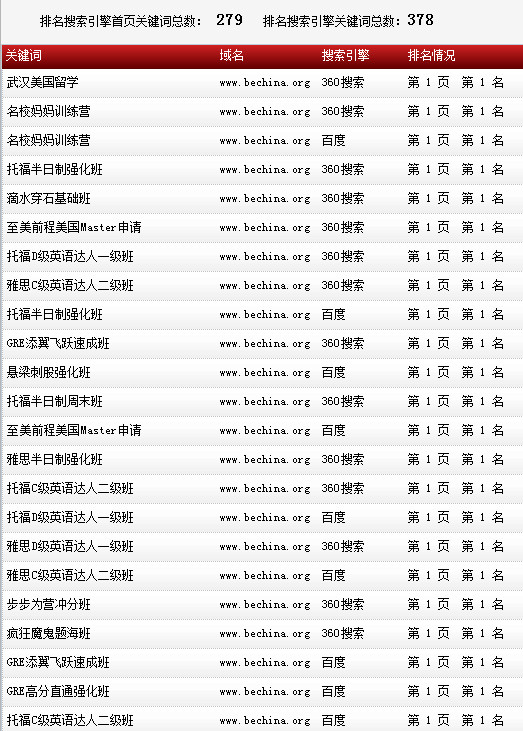 關(guān)鍵詞在各大搜索引擎排名情況: