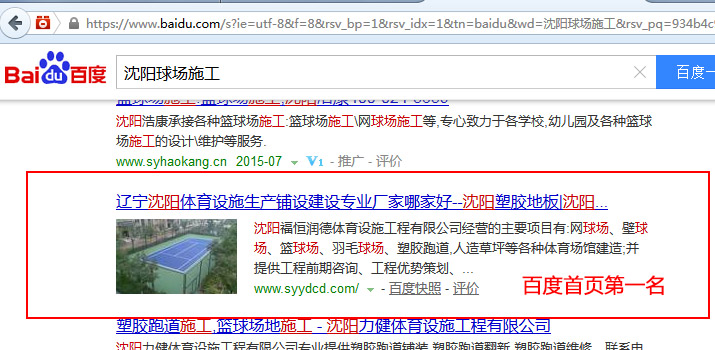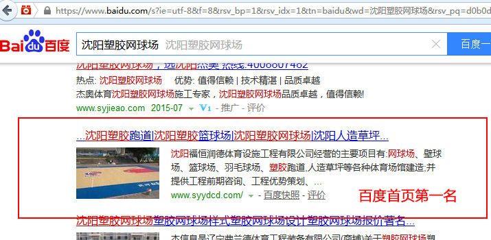 關(guān)鍵詞“沈陽(yáng)塑膠網(wǎng)球場(chǎng)”在百度排名:第1頁(yè)第1名